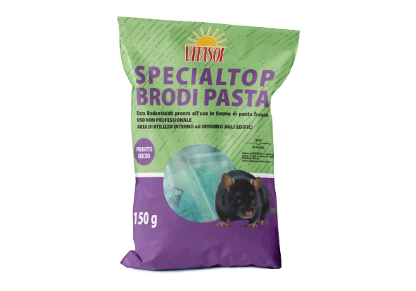 SPECIALTOP BRODI PASTA rappresenta una soluzione di alta efficacia per la protezione degli ambienti civili e domestici dalle infestazioni di roditori. La sua formulazione in pasta fresca è stata studiata per attirare i roditori bersaglio anche in presenza di altre fonti di cibo, garantendo un controllo rapido e discreto della popolazione infestante.
