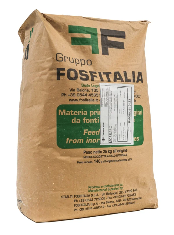 Ottimizzazione del Rapporto Ca:P: L'alta concentrazione di Fosforo consente di mantenere un rapporto Calcio-Fosforo limitato. Questa caratteristica è cruciale durante il periodo dell'asciutta, dove è necessario evitare eccessi di Calcio per mantenere attivo il metabolismo ormonale (paratormone) dell'animale. Supporto alle Patologie Ossee: È particolarmente indicato per soggetti che presentano difficoltà nella mobilizzazione del calcio dalle riserve scheletriche, aiutando a prevenire squilibri metabolici nel post-parto. Eccellente Digeribilità: Grazie all'elevata solubilità nei succhi gastrici, il Fosfato Bicalcico assicura che la quasi totalità del minerale apportato venga effettivamente assorbita e utilizzata dall'organismo. Standard di Purezza Elevati: Il prodotto garantisce livelli minimi di elementi indesiderati (come fluoro o metalli pesanti), assicurando la massima sicurezza alimentare e la tutela della salute animale.